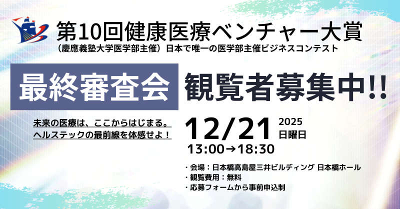 【慶應義塾大学医学部主催 第10回健康医療ベンチャー大賞】 最終審査会観覧のご案内 【12/21(日)】