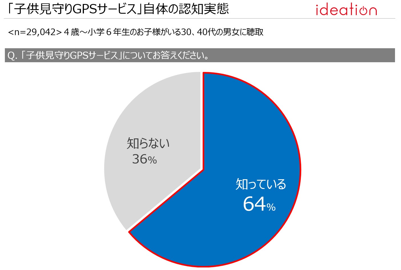 ・子供見守りGPSサービスの認知度は64%である。