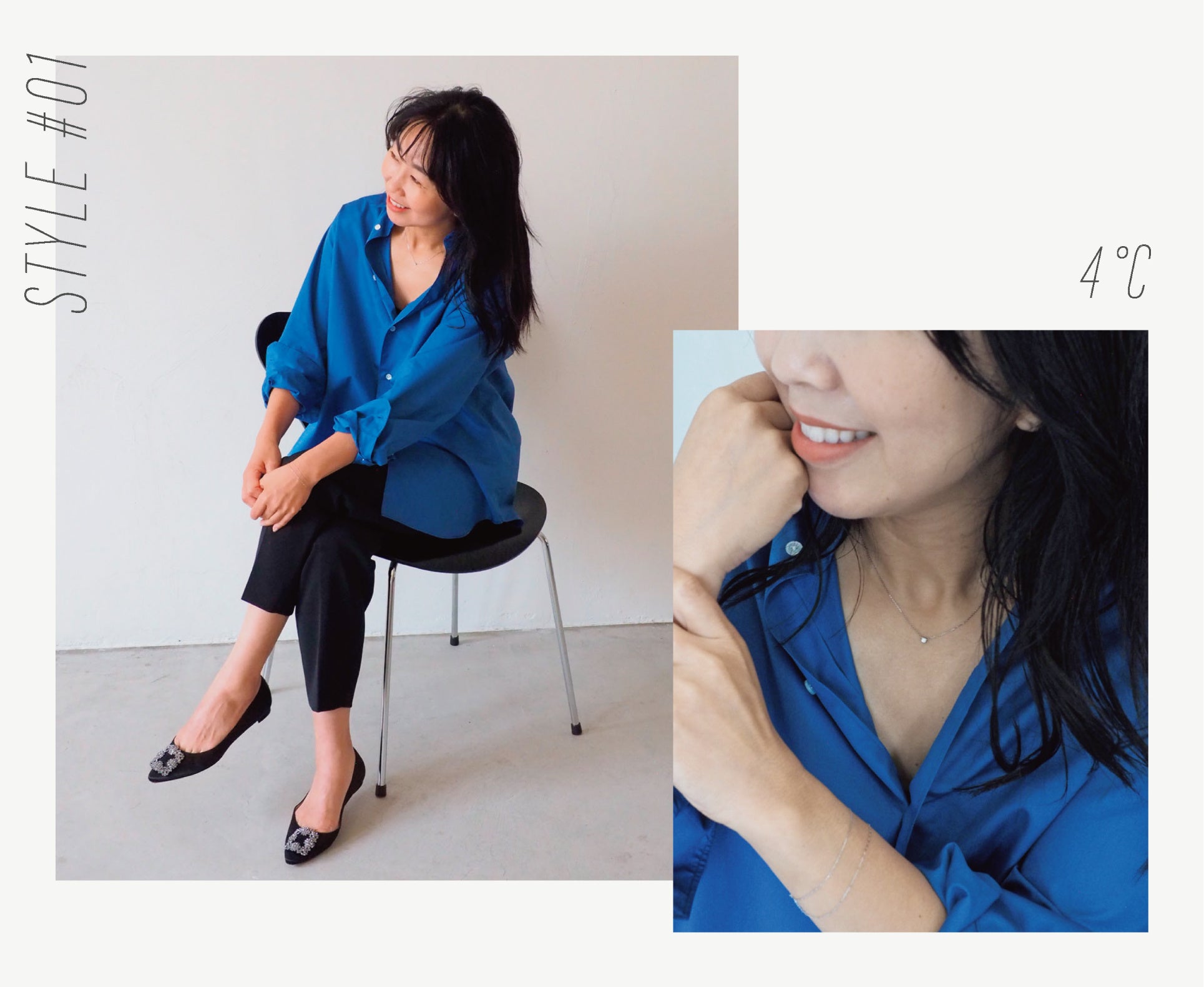 今回、プラチナ・ジュエリーブランド「プラチナ・ウーマン」で、旬のベーシックスタイリングを提案するスタイリスト福田 麻琴さん曰く、「家時間が増えてリラックススタイルを楽しんでいた時期からまた変わり、気持ちが外に向かってきている今。煌めき、特別感、新しい自分を見たいという気持ちが高まっていると思うんです。その気持ちとプラチナという素材がピタッとハマる感じがします」。