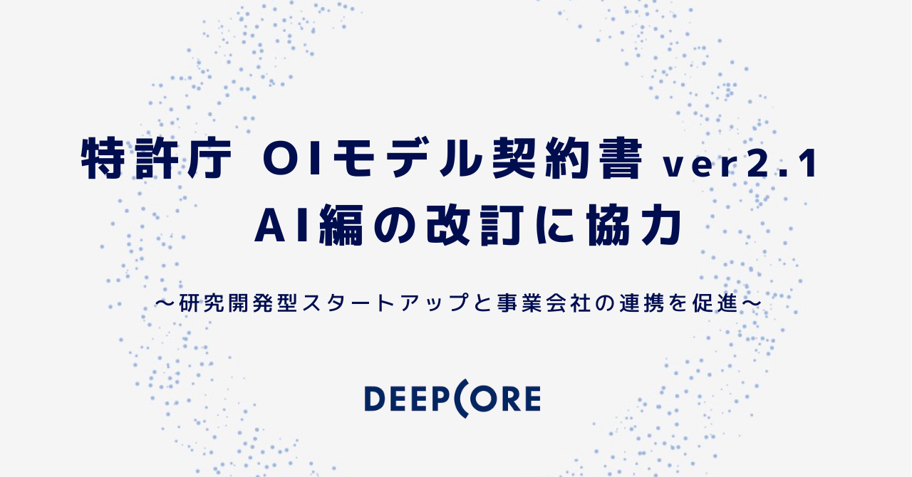 DEEPCORE、特許庁 OIモデル契約書 ver2.1 AI編の改訂に協力
