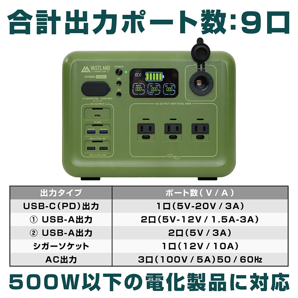 キャンプ・アウトドア用品ブランド「VASTLAND」、「ポータブル電源 VL-PS610A」を2022年8月27日(土)に発売