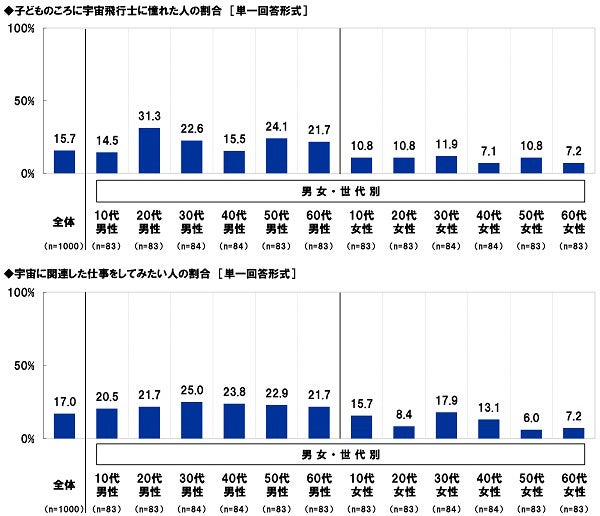 - 「宇宙に関連した仕事をしてみたい」17%、30代男性では25%