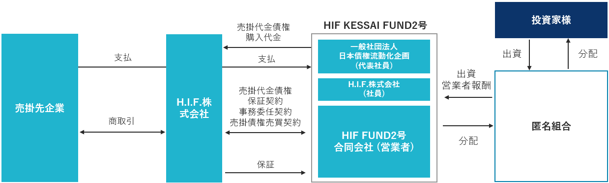 ・保証:ファンドが保有する対象売掛債権には、H.I.F.の売掛金保証が付保されております。