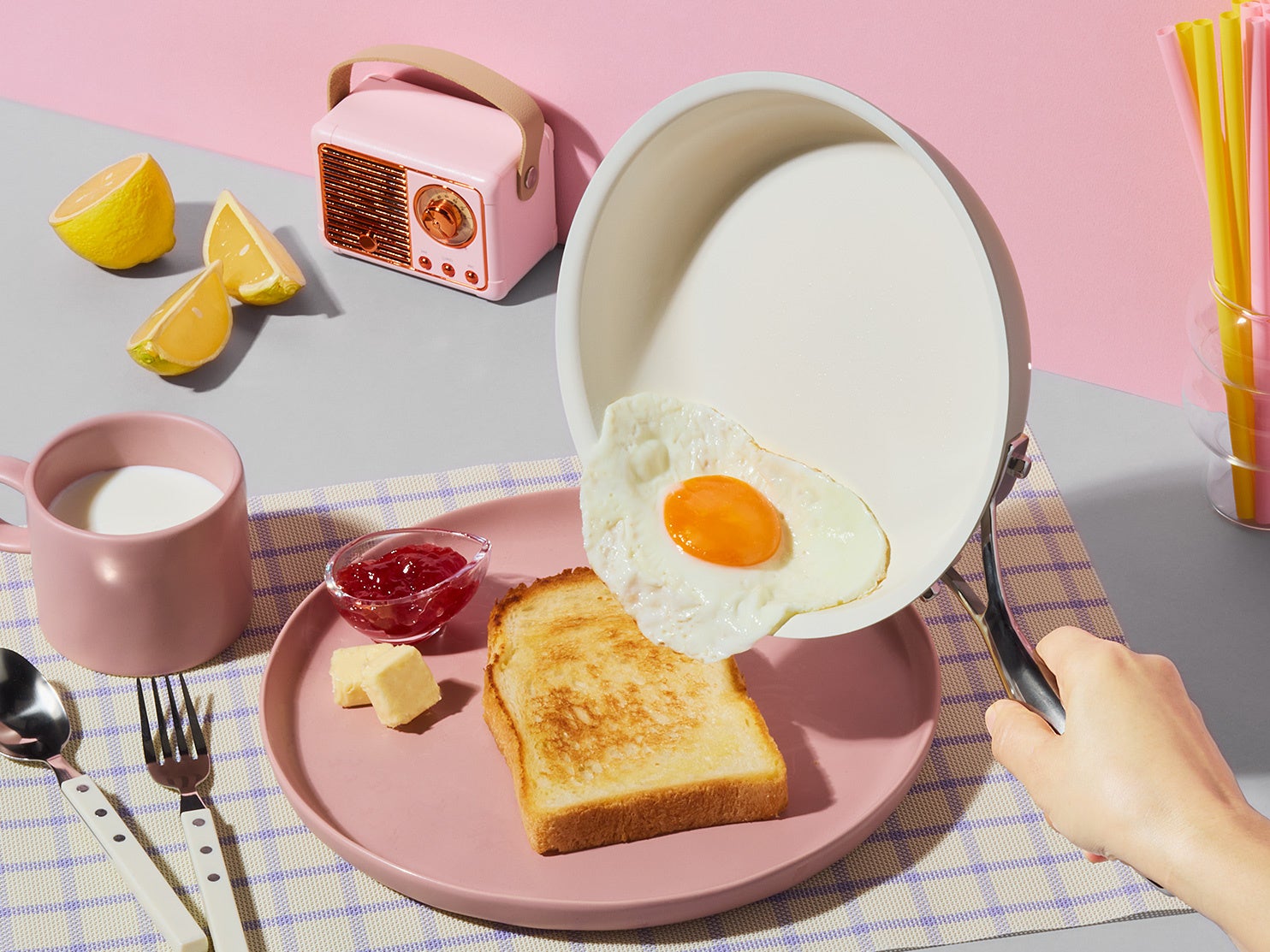 第1弾プロダクトとして、"Ceramic Love"をコンセプトにしたセラミックフライパン「riff」を発売。Ash RoseとPearl Grayのポップな2色展開