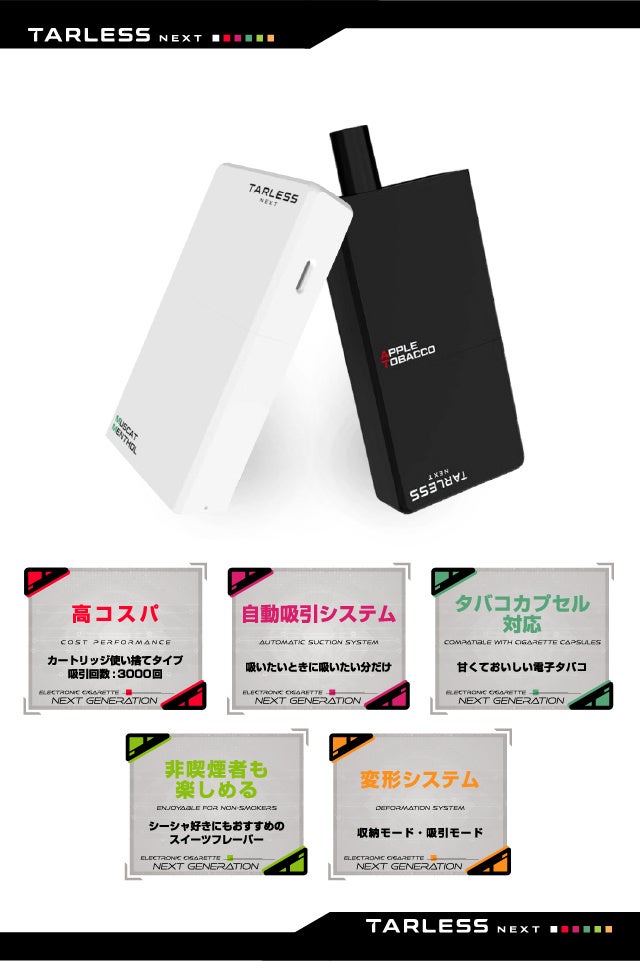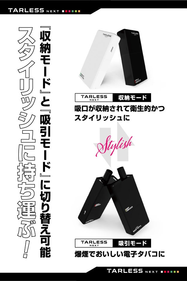 TARLESS NEXTは喫煙者にとってタバコの新たな選択肢に、シーシャ好きにとってはどこでも楽しめる持ち運びシーシャです。