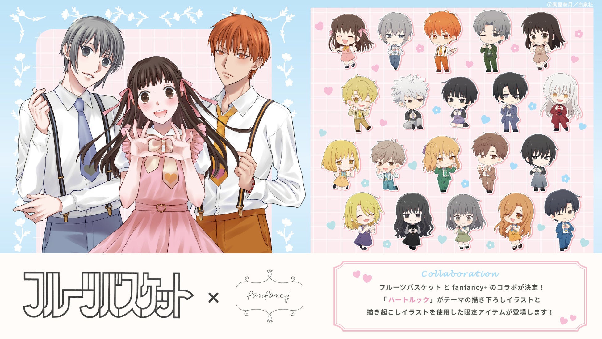 今回のコラボでは”ハートルック”をテーマに、高屋奈月先生の描き下ろし限定イラストを使用した透・由希・夾のアクリルスタンドや、付属のミニ色紙や缶バッジを入れて飾れるアクリルフレームのセットなど、fanfancy+らしい、自分好みにカスタマイズできるアイテムが登場します。