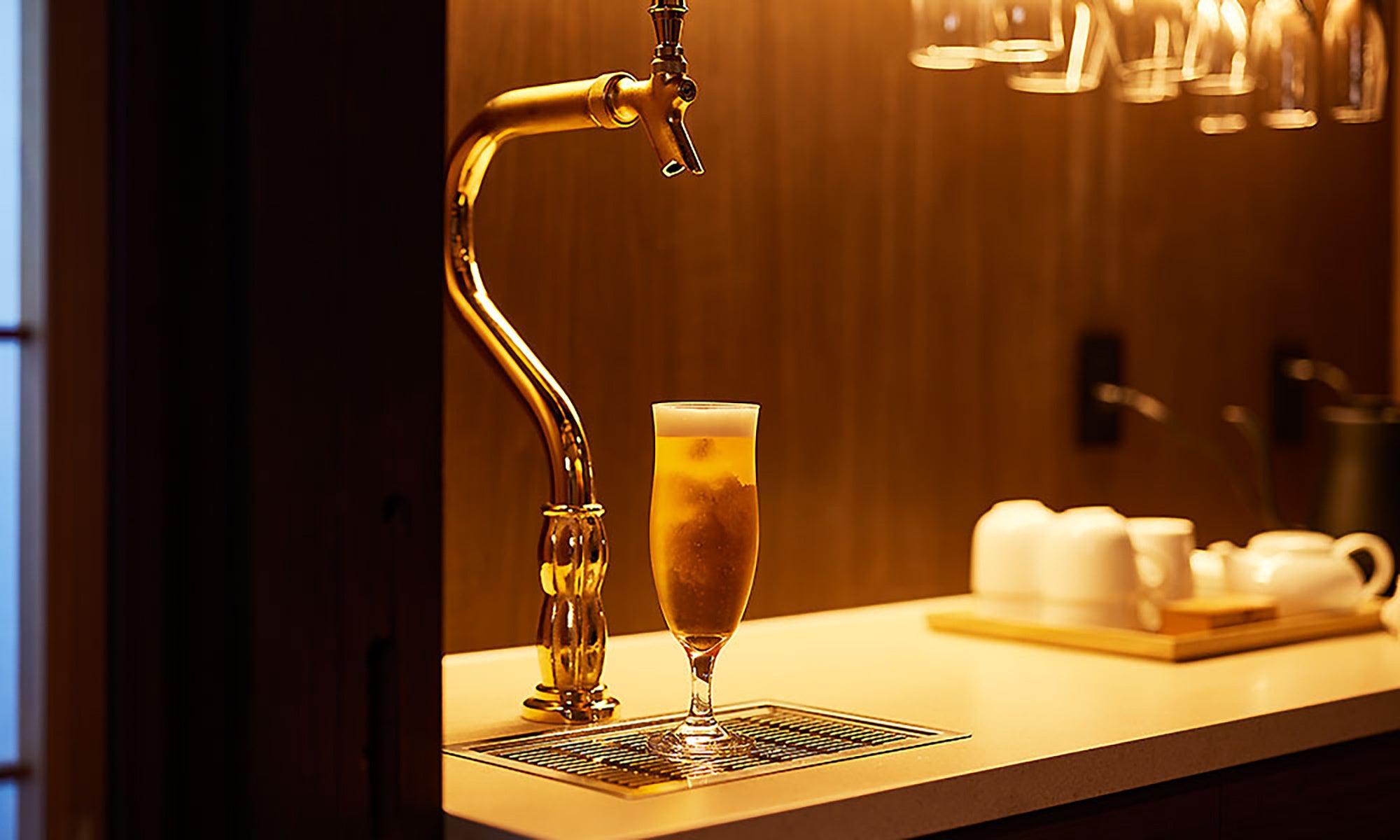 遠く名峰富士の雄姿もご覧いただける2Fには、当邸の名の由来にもなった伝説の “みさご島” を眺めながらゆったりお酒が楽しめる、ホームバースタイルのサロンもご用意いたしました。お食事後やアフターサウナのひとときに、グラスを傾ける優雅なナイトタイムをどうぞ。