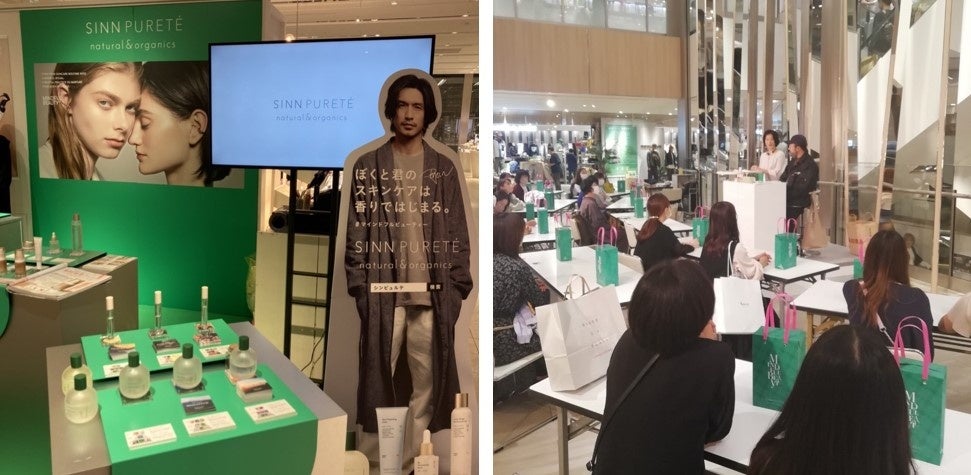 出店ブランドの商品切り口としては、香りや使った感触など五感を通して、心へのアプローチを行い肌本来の力を取り戻し、リフレッシュした気分でスキンケアを楽しむ「マインドフル美容」から、人それぞれがもっている肌・身体の悩みの手助けをしてくれるナチュラル&オーガニック アイテムを展開します。