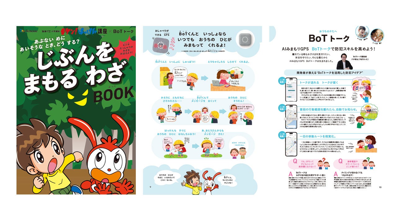 「キケン!はっけん講座」の新規付録として「じぶんをまもるわざBOOK」を2024年度 3冊新たに提供。「キケン!はっけん講座」の新規付録において、両社のコラボレーションコンテンツとして、BoTトークを活用した子どもの安心安全を見守る方法を紹介します。