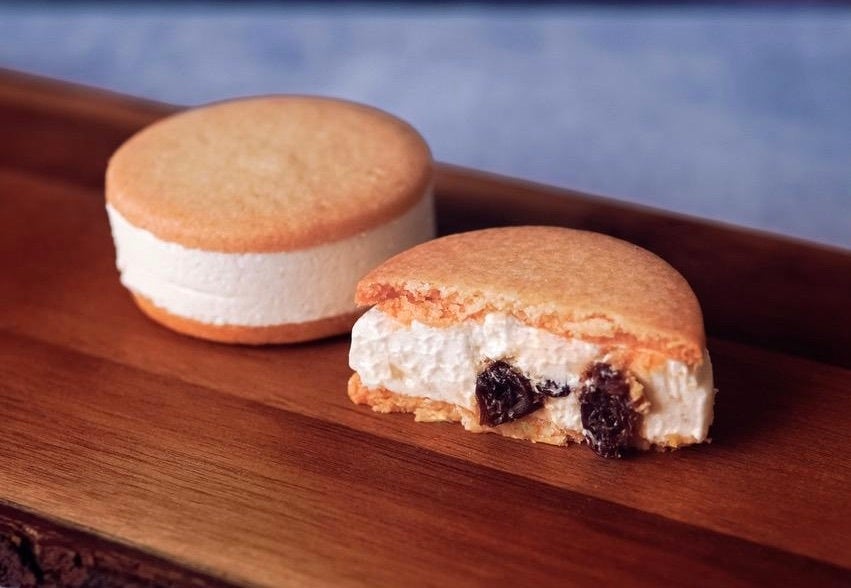しっとりとした食感のクッキーとなめらかなクリームのバランスが絶妙で、軽やかな歯ざわりのバターサンドに仕上がりました。クリームには別海バターとクリームチーズを使用し、贅沢に厚くサンドしています。レーズンのクッキーバターサンドには、丁寧に柔らかく炊き込んだ大粒のレーズンを使用し、芳醇な三重奏の味わいがお楽しみいただけます。ずっしりとした食べごたえがあり、満足できるボリューム感が特徴です。