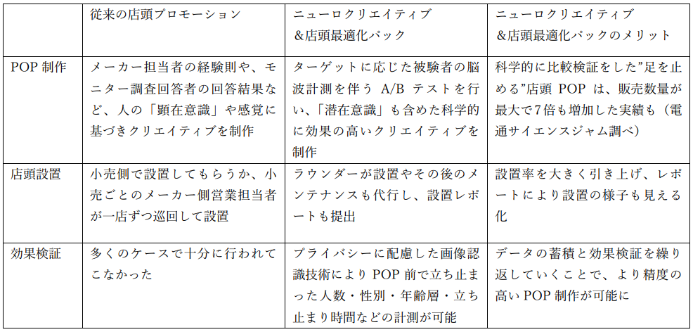 <従来の店頭プロモーションと「ニューロクリエイティブ&店頭最適化パック」の違い>