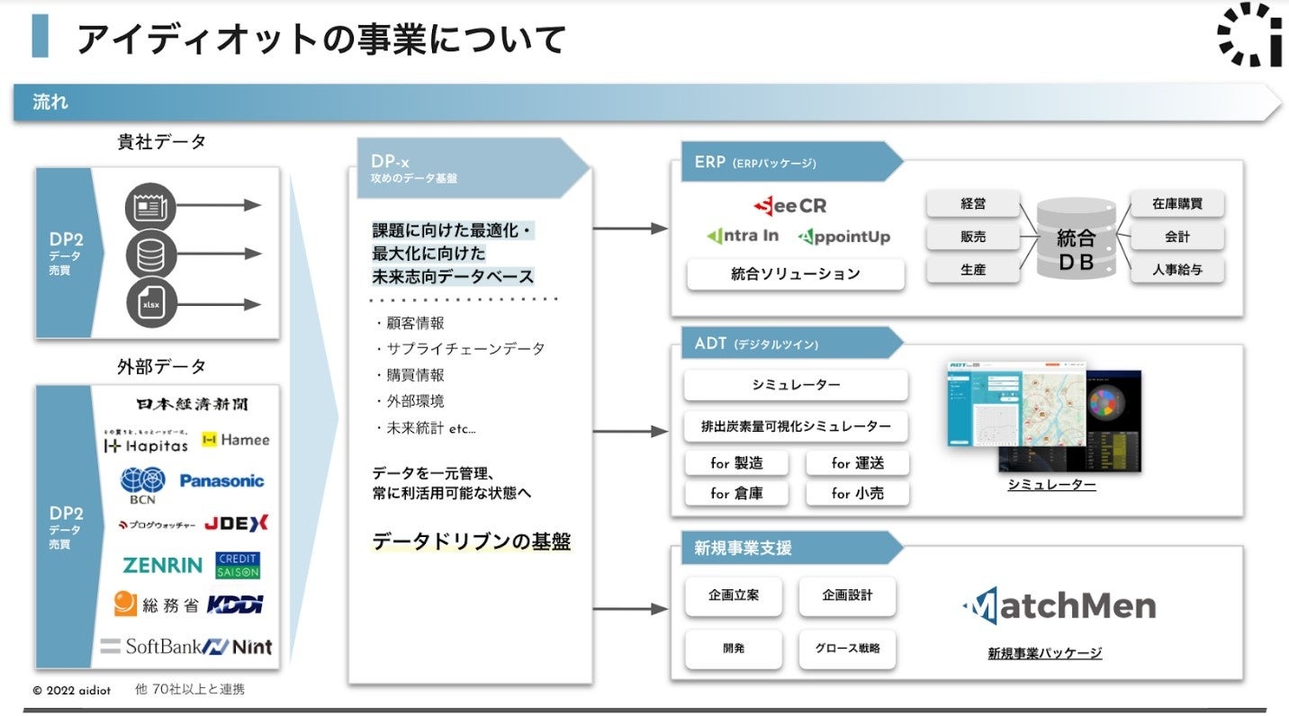 多様化する顧客ニーズや消費者の行動に応えていくには、データに基づいた分析が必要不可欠です。当社では、AIを用いたデータプラットフォームの構築や新規事業の立ち上げ支援に精通しておられるアイディオット社とともに、お客様に新たな価値やライフスタイルを提案していきたいと考えています。