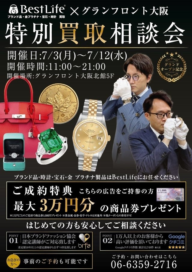 グランフロント大阪北館5F 熟練査定士による「特別買取相談会」を開催
