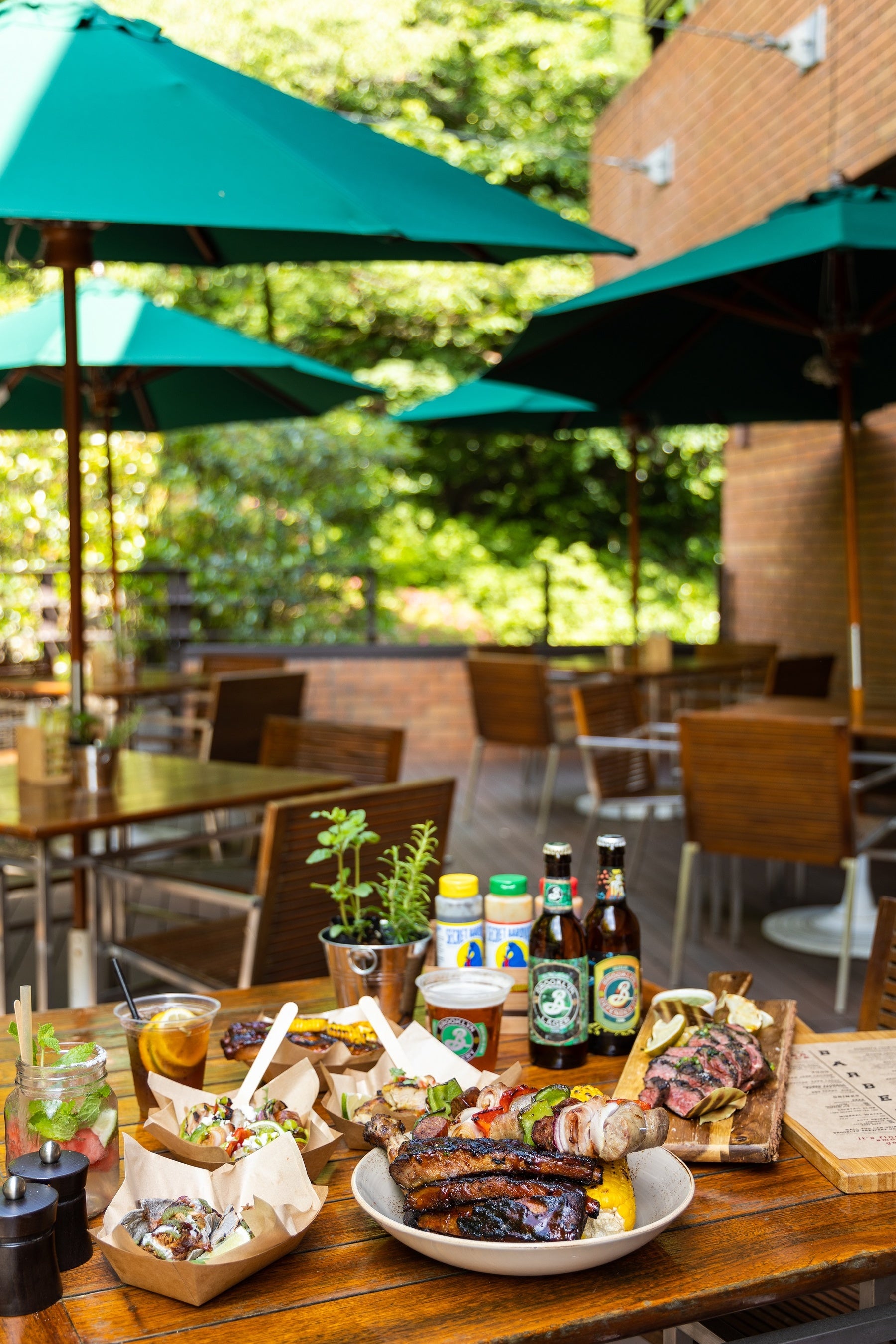 スパイスのきいたアメリカンスタイルのお食事に合わせてセレクトしたのは「ブルックリン・ブルワリー」のワンランク上のクラフトビール。爽やかな飲み口と、華やかなホップの香り、カラメルの余韻が愉しい「ブルックリンラガー」、爽快な香りと絶妙な苦味の特別なIPA「ブルックリンディフェンダーIPA」、北海道発祥ホップの特別なおいしさ「ブルックリンソラチエース」をご用意いたします。BBQテラスだけでご提供する夏らしいカクテルやモクテルもお楽しみください。
