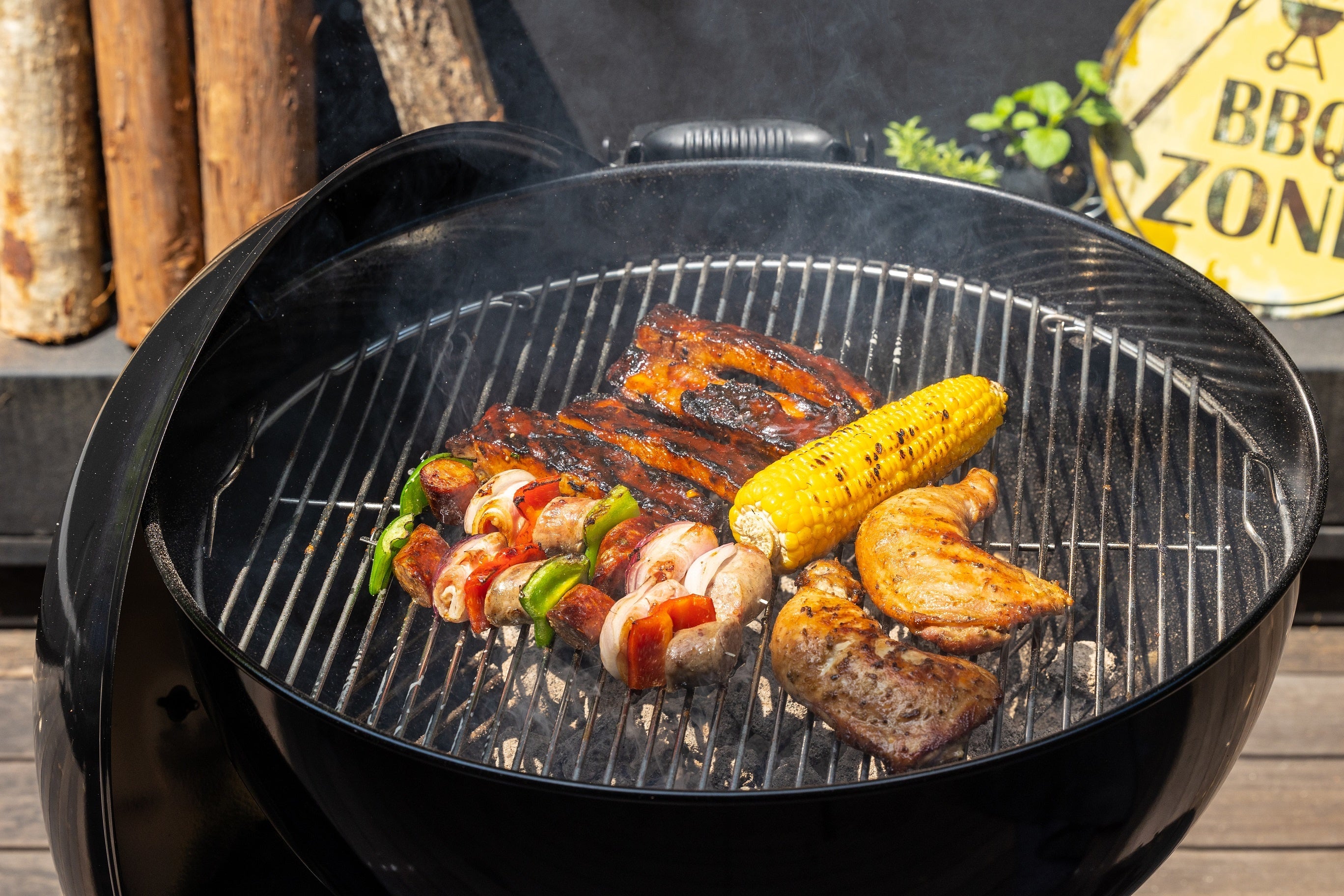 サマーBBQテラスでは1952年の創業以来、バーベキューを追求し続けているWeberのオリジナルケトルグリルを使って焼き上げます。Weberのグリルは特徴的な球体型をしています。蓋がついているということで、火力だけではなく、素材の水分もコントロールできてしまうので、グリル内は効率よく熱や香りが循環し、一段とおいしい焼き加減となります。