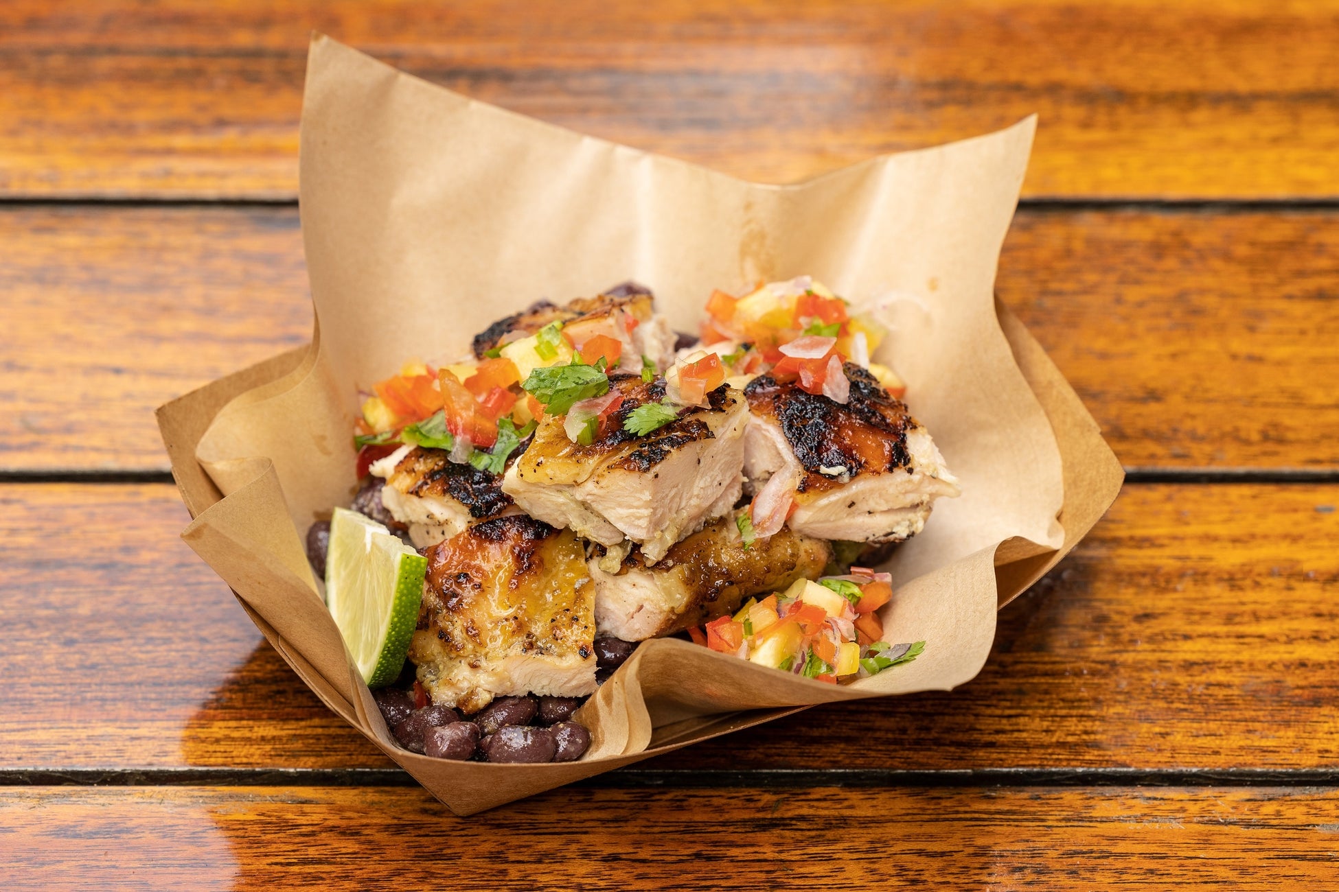 グリルパイナップルのサルサ、ブラックビーンズ