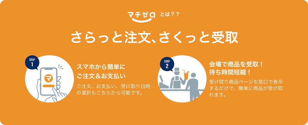 マチゼロは、会場でのフードやグッズ購入に対する待ち時間回避のため、事前にネット購入しイベント会場で商品をすぐに受け取ることができるモバイルオーダーシステムです。