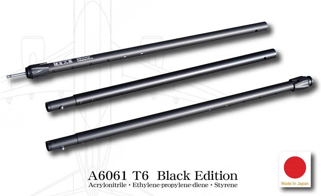 ポール部分の差込口、伸縮するスライド側のポールもオールブラックアルマイトに。