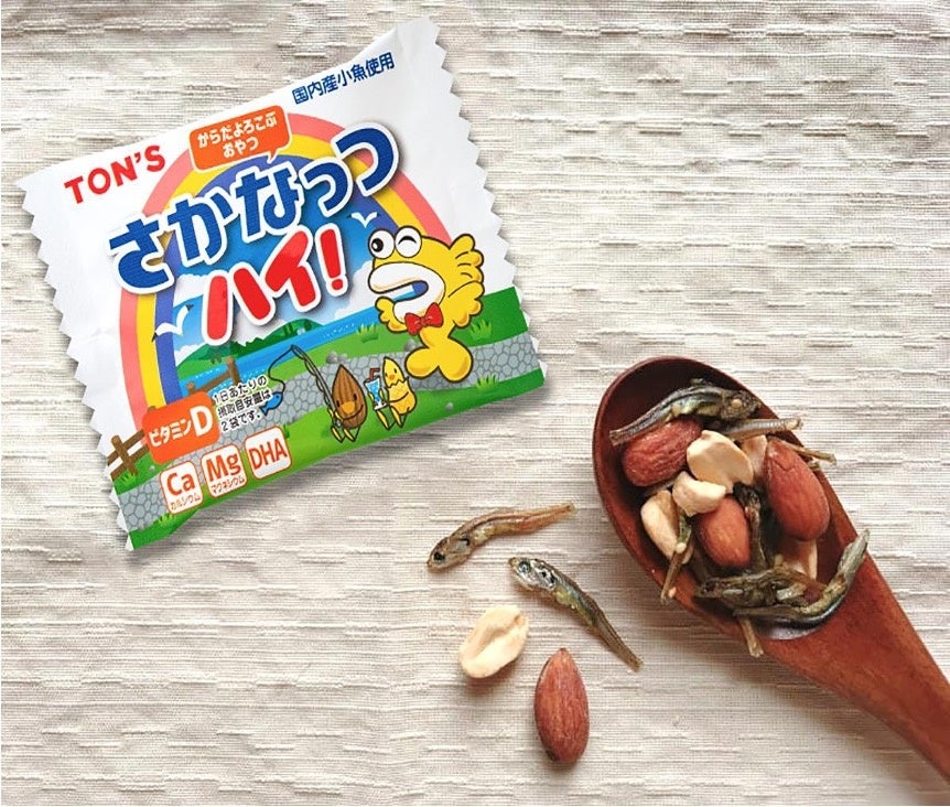東洋ナッツ食品株式会社(1959年創業/本社:神戸市東灘区)が、1985年に発売した『さかなっつハイ!』は、アーモンド、脱脂ピーナッツ、国内産小魚(カタクチイワシ)を組み合わせたミックスナッツ。カルシウムやマグネシウム、DHAなどの栄養素をバランスよく含み、“健康おやつ”として学校給食でも提供されてきました。子どもの勉強のお供としても、ママの美容にも嬉しい“一石二鳥おやつ”です。