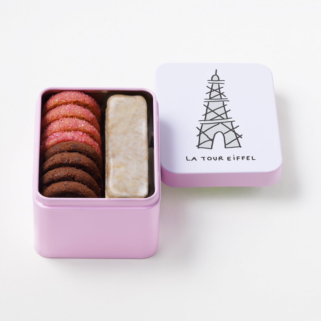 メゾンを代表するサブレ3種を、パリを象徴するエッフェル塔をあしらった特製缶に詰め合わせました。今回だけの特別な仕様でプティギフトにもおすすめです。サブレの内容は、バラとフランボワーズ、ライチのフレーバー「イスパハン」、チョコレートの美味しさを堪能できる「アンフィニマンショコラ」の定番2種と、この詰め合わせのみの限定で、レモンの香りが広がる「アンフィニマンシトロン」1種です。