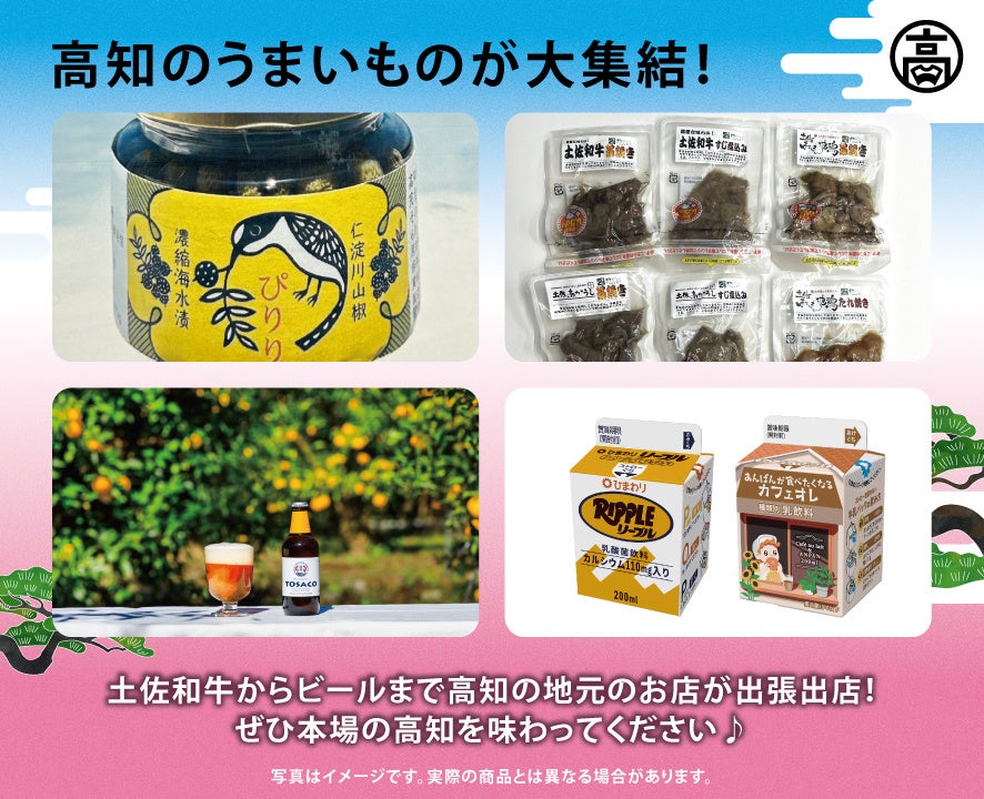 また、会場には高知の「食」の魅力を体感いただけるよう、高知のうまいものを集めた物販ブースを設置。その他、「SUPER LOCAL高知家」の魅力を発信するスペースも設置し、人と人とのとびきりあたたかいコミュニケーションも体験いただけるとともに、「よさこい鳴子踊り」など、来場者参加型プログラムもご用意しています。