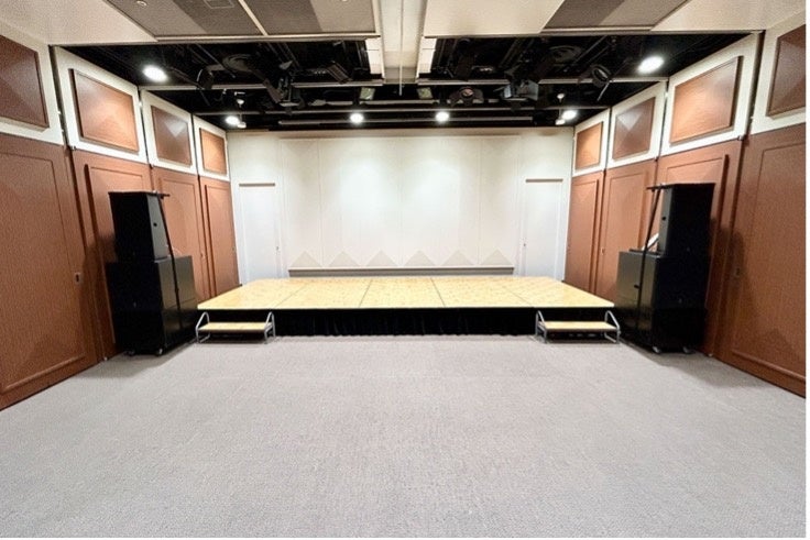 は、標準仕様で約 100 名収容可能。大型会議や研修、株主総会などの VIP 様を招いての催しや、採用試験、記者発表、また、防音設備も整っているため楽器演奏にも対応可能など、幅広く利用できる大変価値のある空間をご提供いたします。