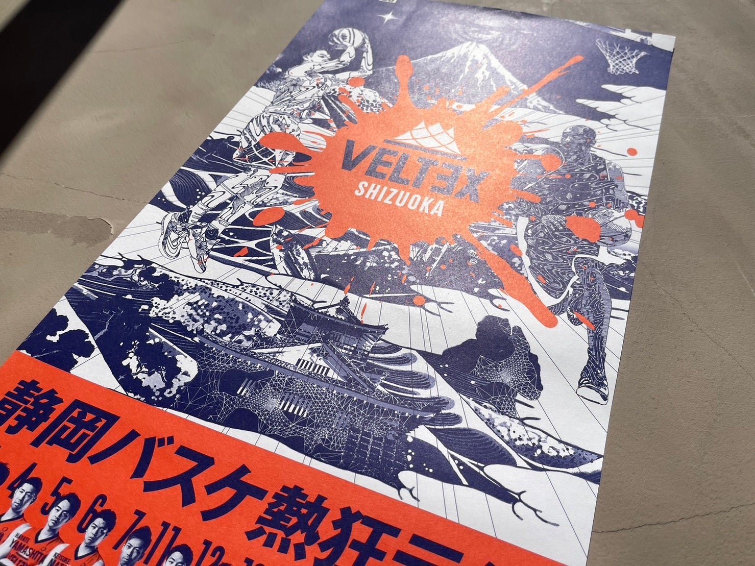 今回 CITY EDITION UNIFORM をデザインしていただいたTAKERUさんは、『静岡バスケ熱狂元年』のスローガンを掲げた、ベルテックス静岡ファーストシーズンのポスタービジュアルを担当していただいたアーティストです。今節 岩手ビッグブルズ戦では、TAKERUさんがこれまで創り上げてきた作品を展示いたします。ぜひお楽しみに。