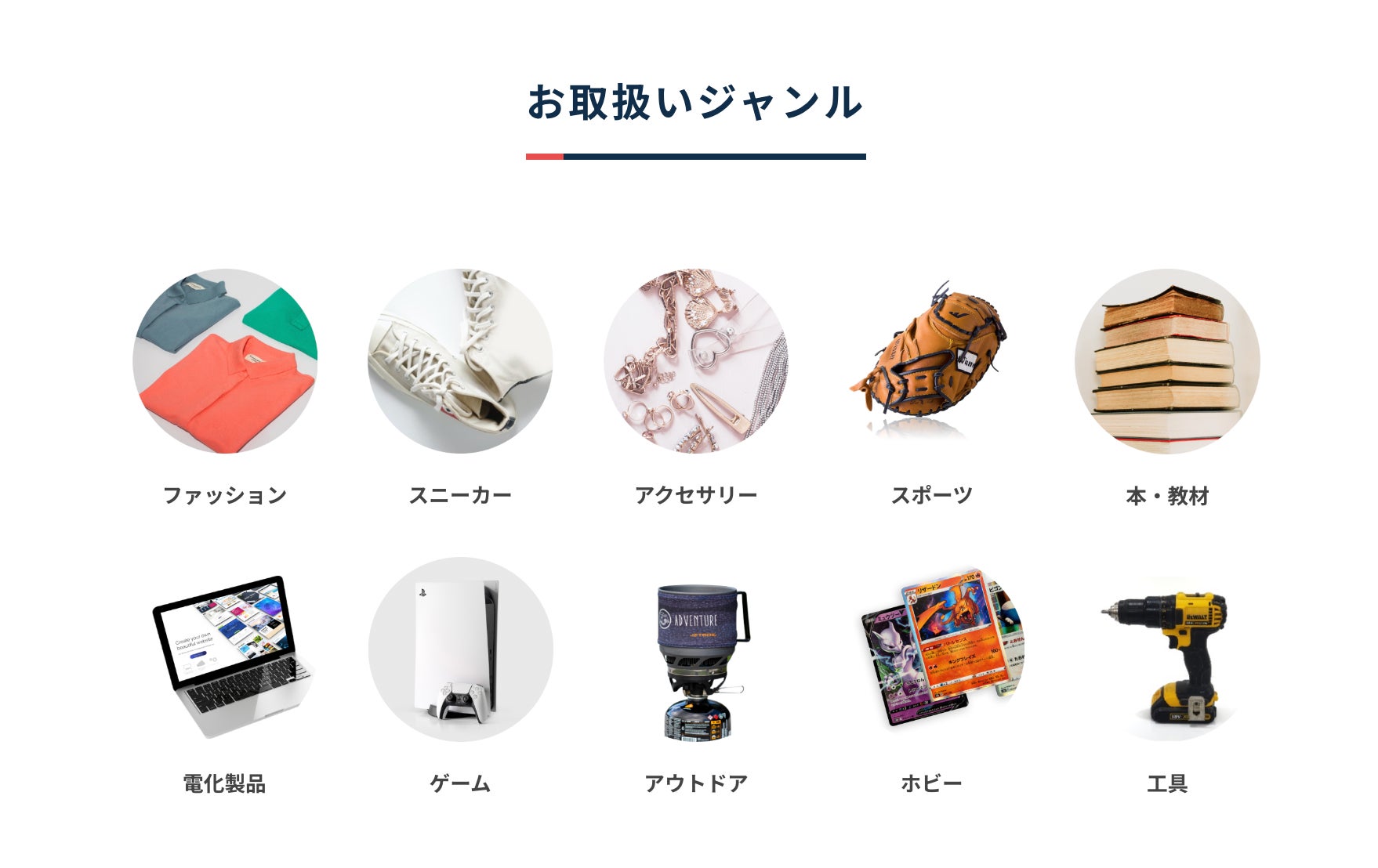 MEGURU出品代行では、アパレル、シューズ・バック・アクセサリー・スポーツ用品・メディア・電化製品・ゲーム機・アウトドアスポーツ用品・ホビー・工具など、あらゆるジャンルに対応します。