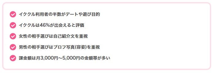 イククルを利用している男女の相手選びの基準や、課金額の統計など気になるデータを徹底調査