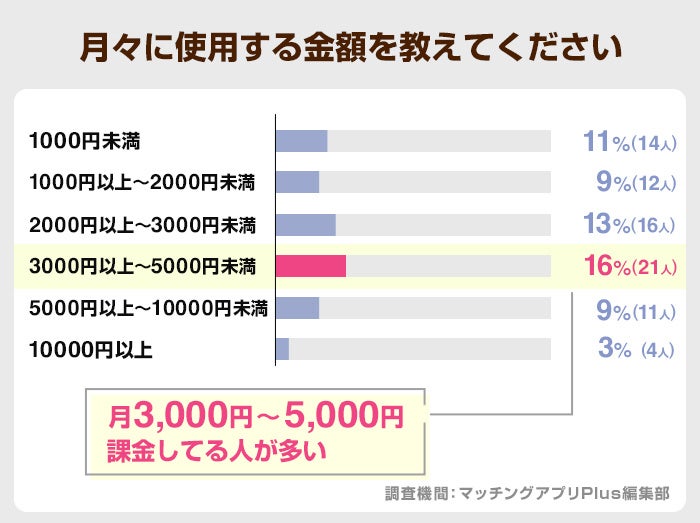 男性利用者のアンケート結果から、月間で「3,000円~5,000円」課金してる人が多い結果でした。