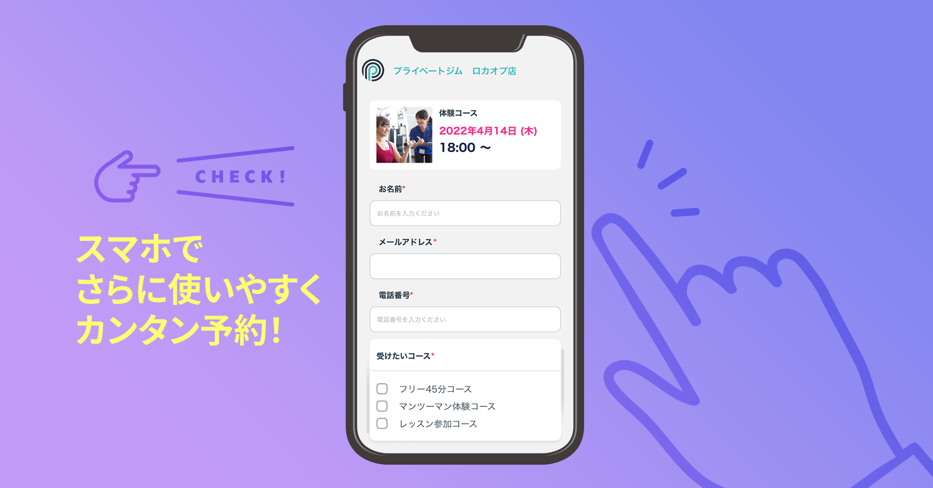 スマホからカンタンに予約できるよう、ボタンやテキストを入力するフォームまわりを全体的に見直しました。