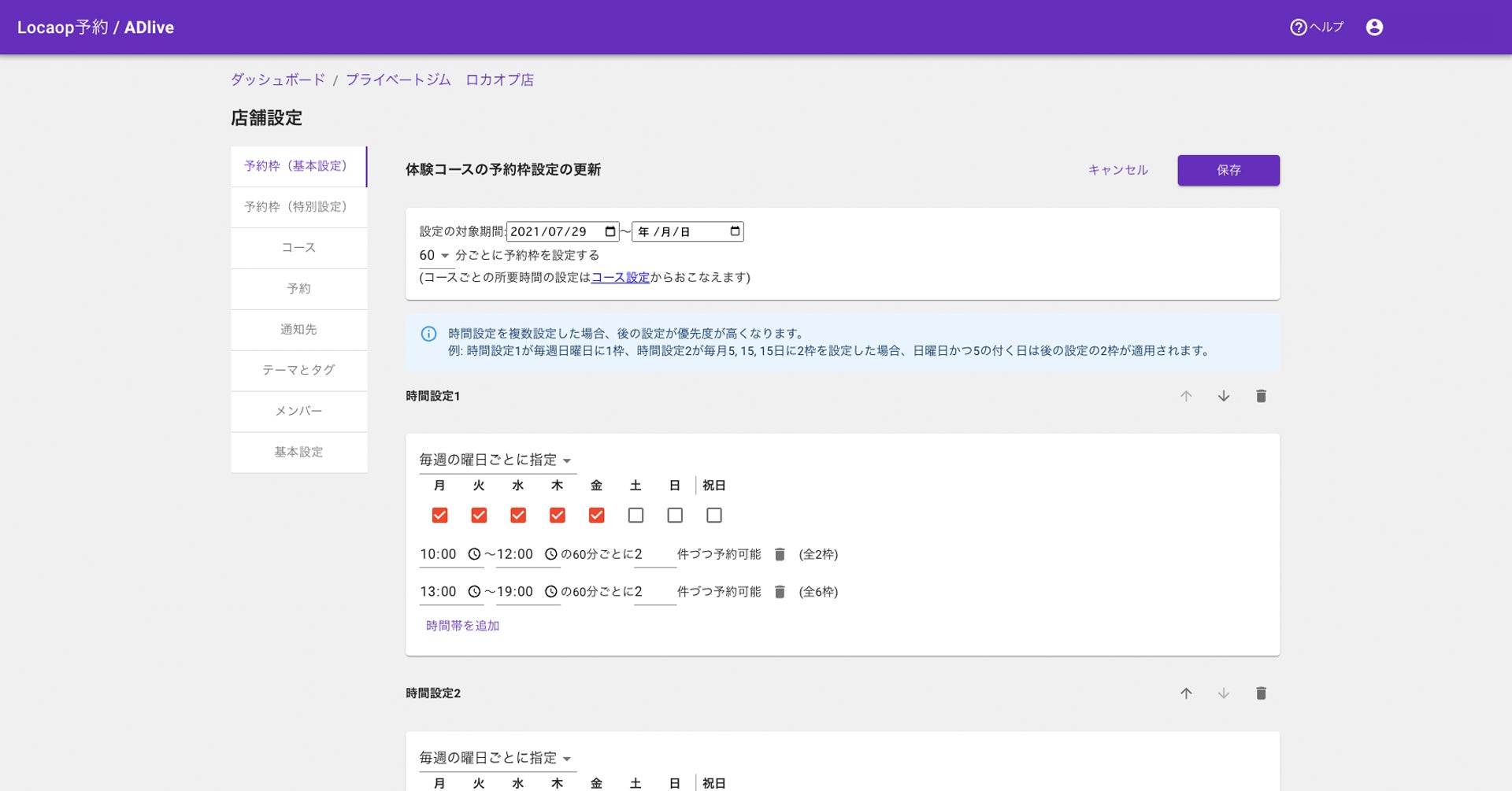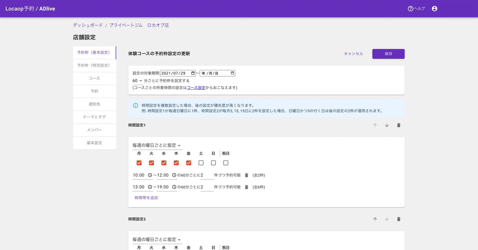 そこでLocaop予約ではルールによる予約枠の設定をご用意し、最低限の操作で設定を完了させることができます。
