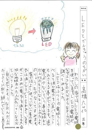 1)子どもたちが日頃のエコ活動をまとめることによって、活動を通して感じたことなどをふりかえる機会や新しい気づきを得るきっかけとすること。