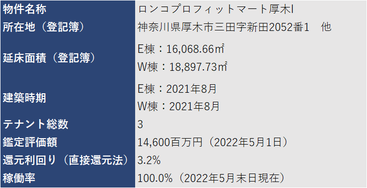 「ケネディクス・リアルティ・トークン ロンコプロフィットマート厚木I(譲渡制限付)」の補足説明資料