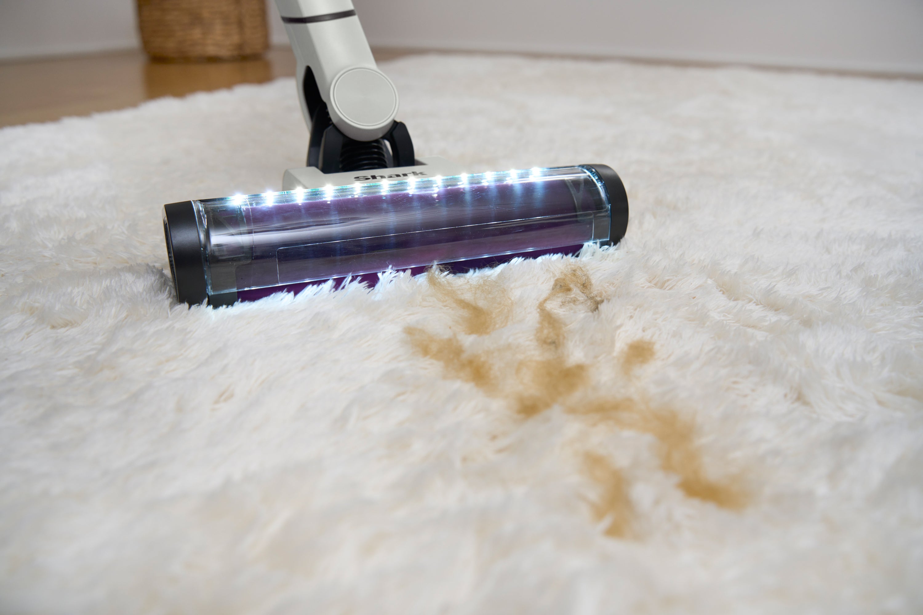 カーペットではブラシの回転スピードを高めることでゴミをかき出しながら取り除きます。
