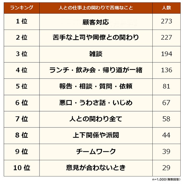 ・仕事上の関わりで苦痛なこと1位は「顧客対応」