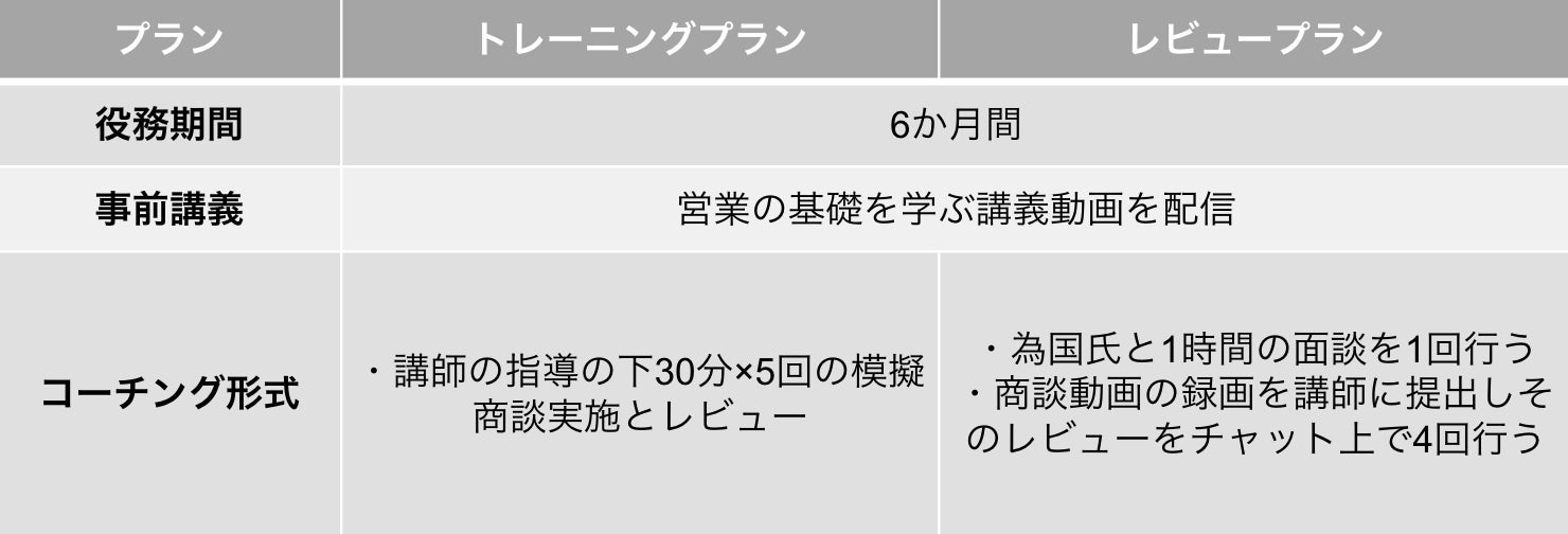 ①動画コンテンツの提供 ②全5回の模擬商談のレビュー の2つです。