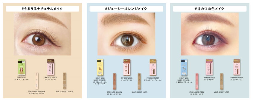 今回新たに、涙袋の影ラインやアイブロウにも使用できる極細ライナー「ドーリーウインク マルチシークレットライナー」(全1種)と、なめらかな描き心地で立体感のある涙袋が作れる「ドーリーウインク スティックラメシャドウ」(全3種)が登場します。