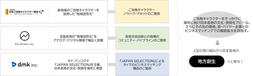 『(一社)日本ご当地キャラクター協会』『株式会社パンクチュアル』『株式会社ディー・エム広告社』の3社が、“地方創生” を1つのテーマに全国の特産品を海外バイヤーへ向けてアピール!
