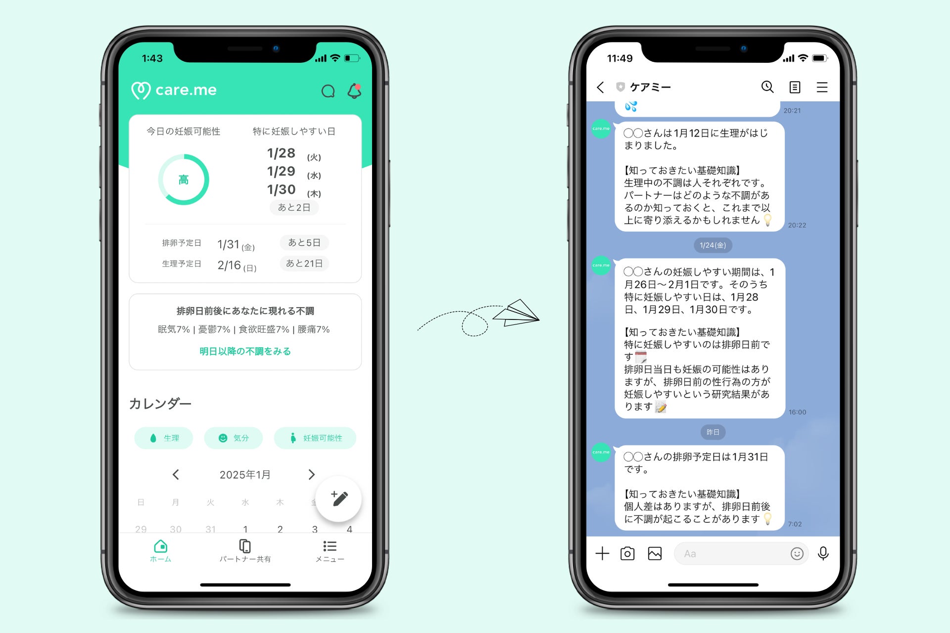 産婦人科医監修の情報をLINEで通知。生理や妊活についてのパートナーの理解を深めます。