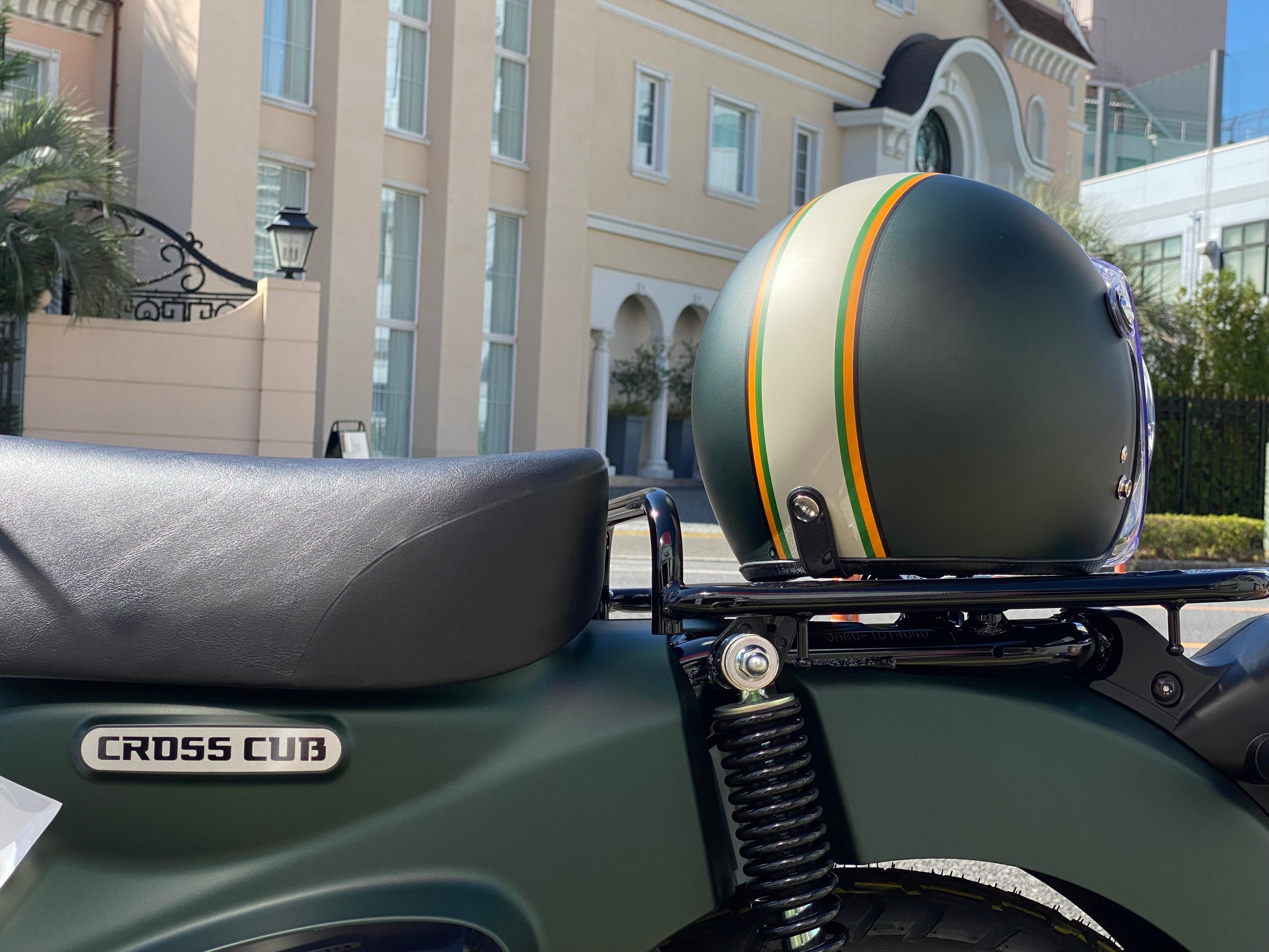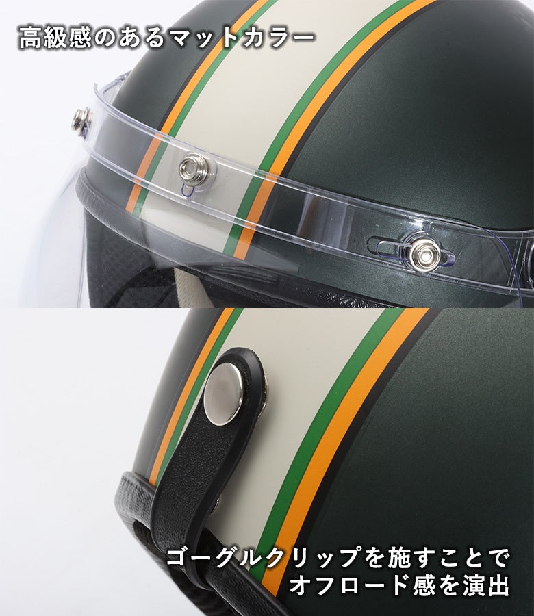 帽体カラーは人気のアースカラーやカーキグリーンの車体に合わせやすいセミマットのダークグリーンを採用。