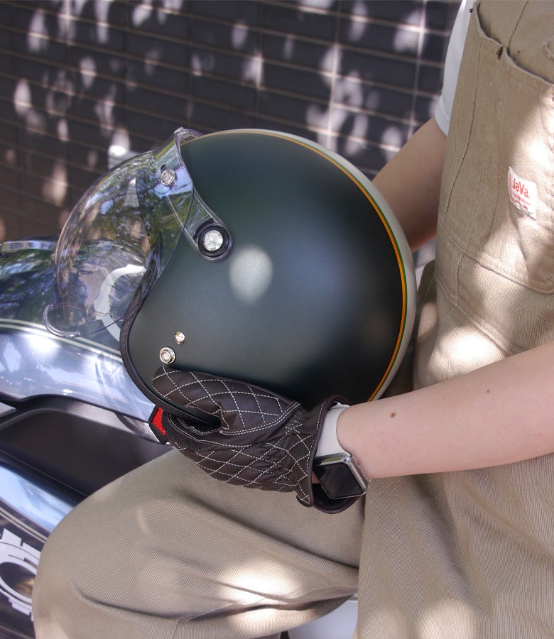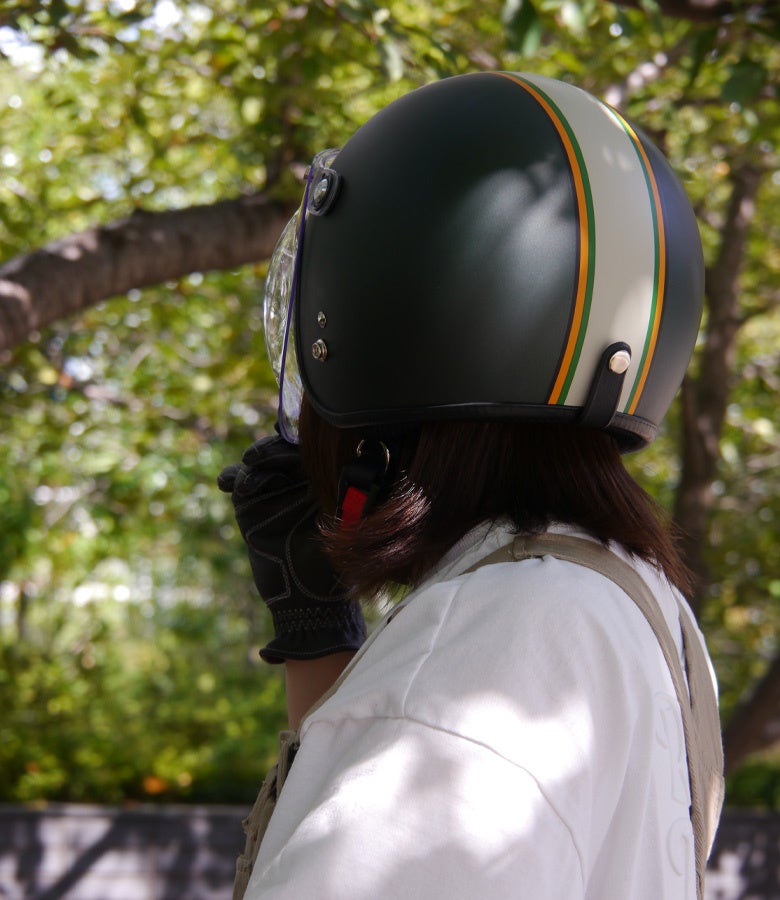 男性でも被れる!シンプルなデザインのダークグリーンカラーのレディースジェットヘルメットが登場。