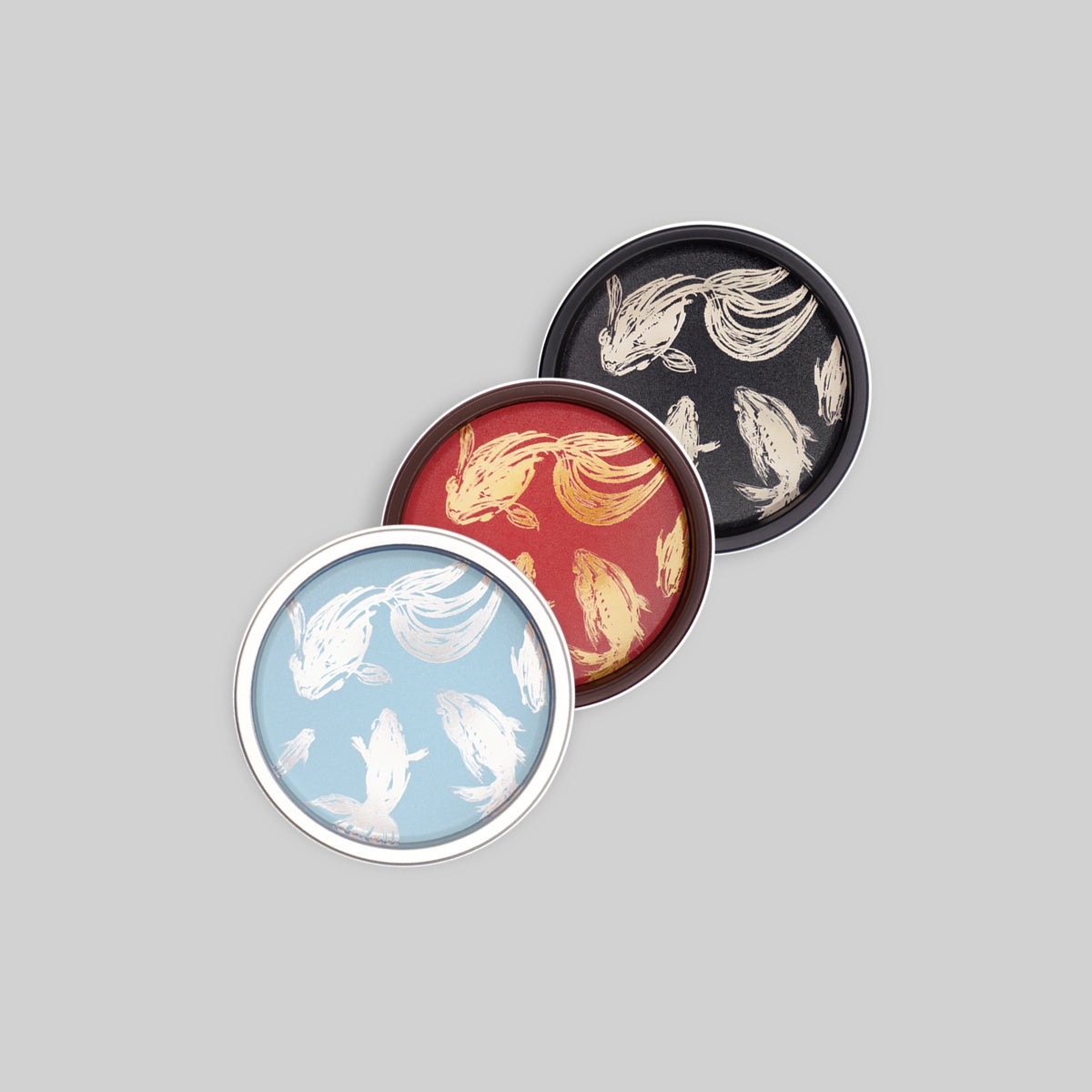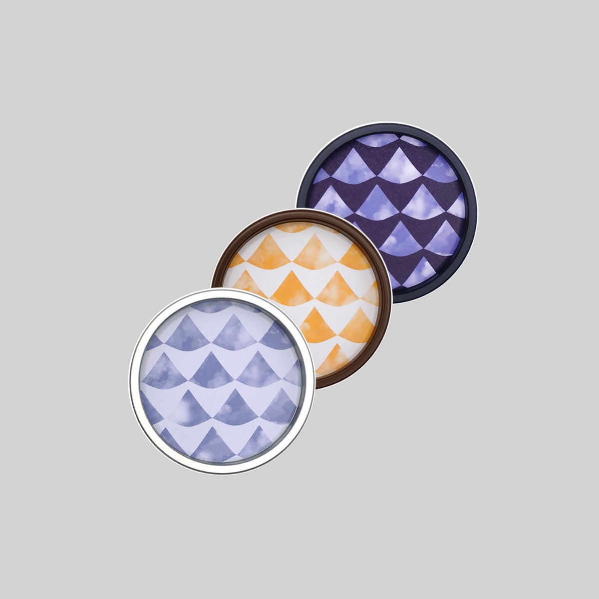 伝統文様のうろこ紋は、魚が水中で自由に動き成長していく様子から繁栄や成長を願う文様として人々に親しまれてきました。有機的な線と水彩の淡い様子が水面を表現し穏やかな中にも動きを感じる文様です。