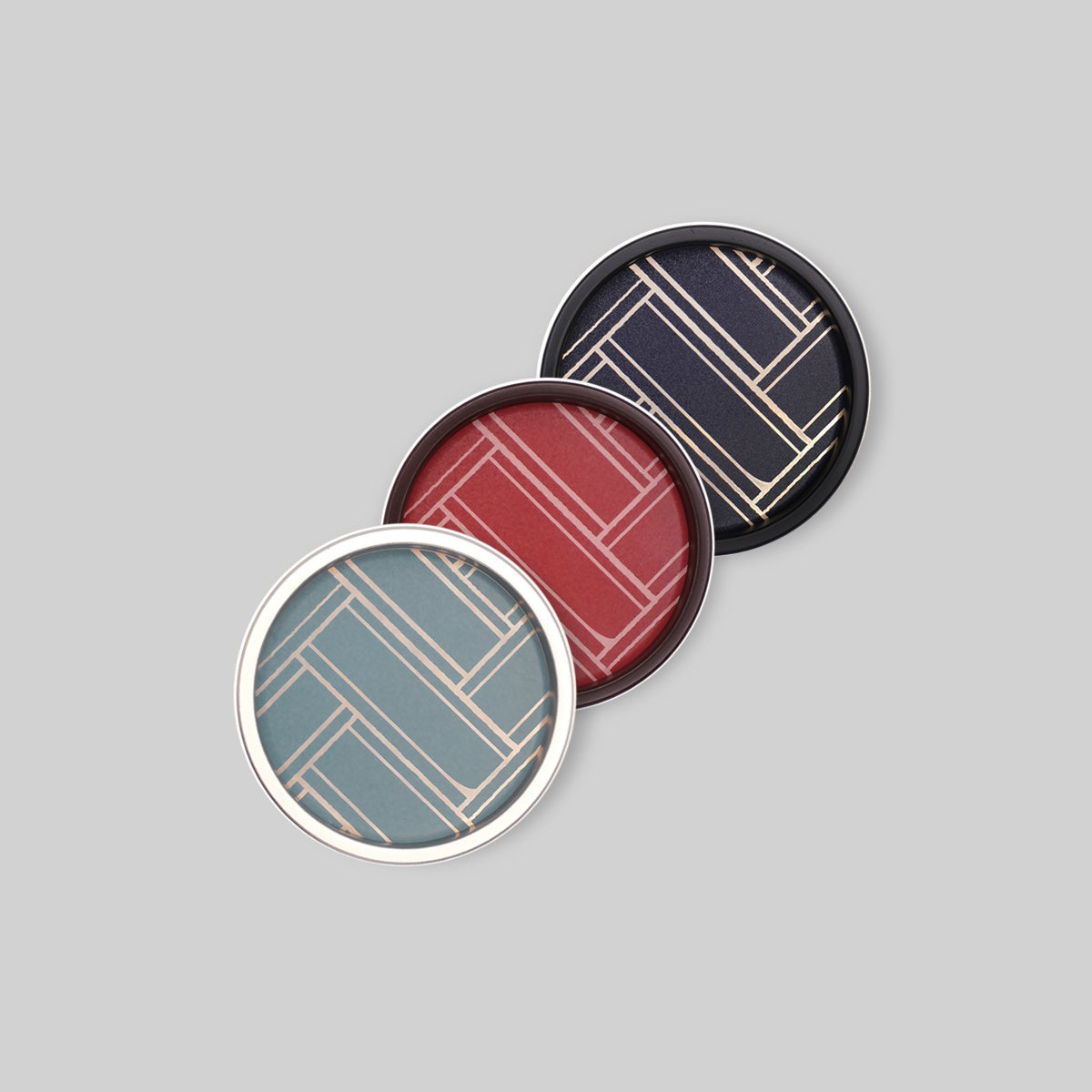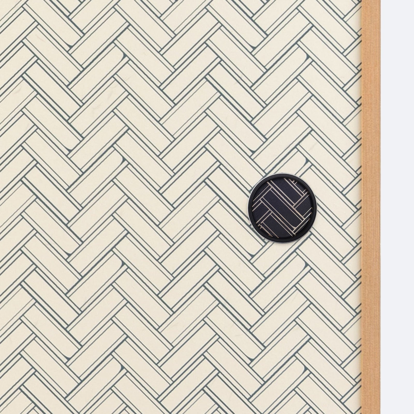 檜の薄板を斜めに組んだ伝統柄「桧垣(ひがき)文様」をモダンに表現。斜めのラインが織りなす構造美とリズミカルな幾何学模様が空間に凛とした品格を添えます。