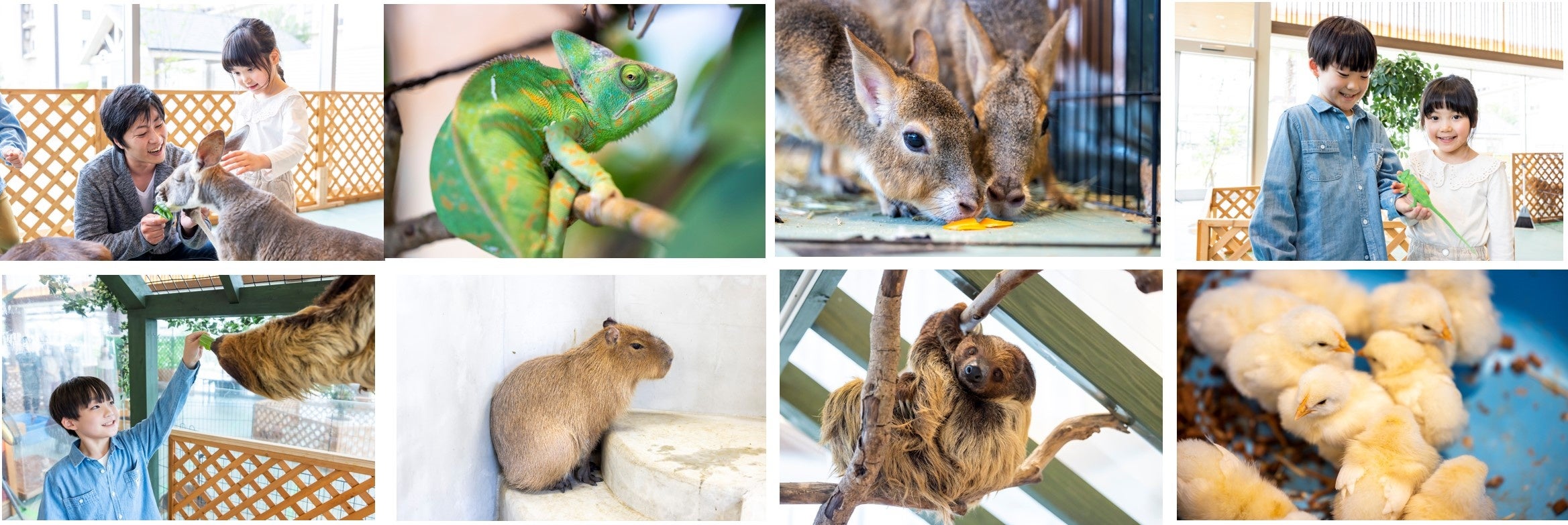 ナマケモノ、カピバラやカメレオンなどの希少動物を数多く展示し、様々な動物たちとより身近に