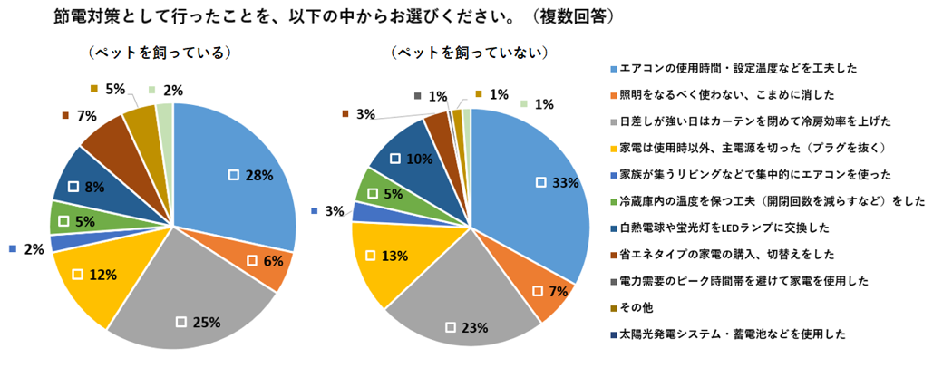 ■「室内でペットを飼っている」世帯ほど節電意識が高い一方「エアコンによる節電対策」は少数傾向、ペットの生育環境を優先した対策が見受けられる結果に