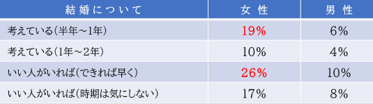 結婚に対する意識調査では8割近くができるだけ早いタイミングでの結婚を希望している!