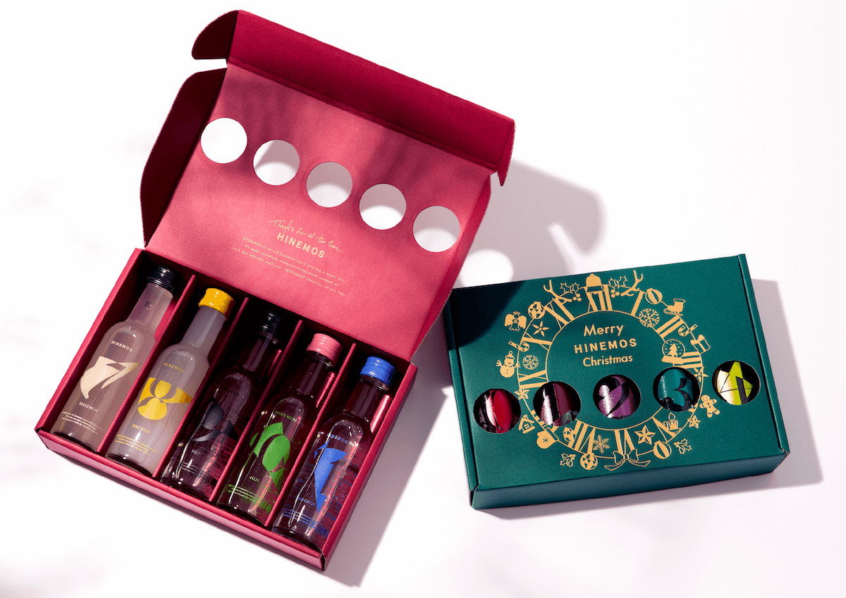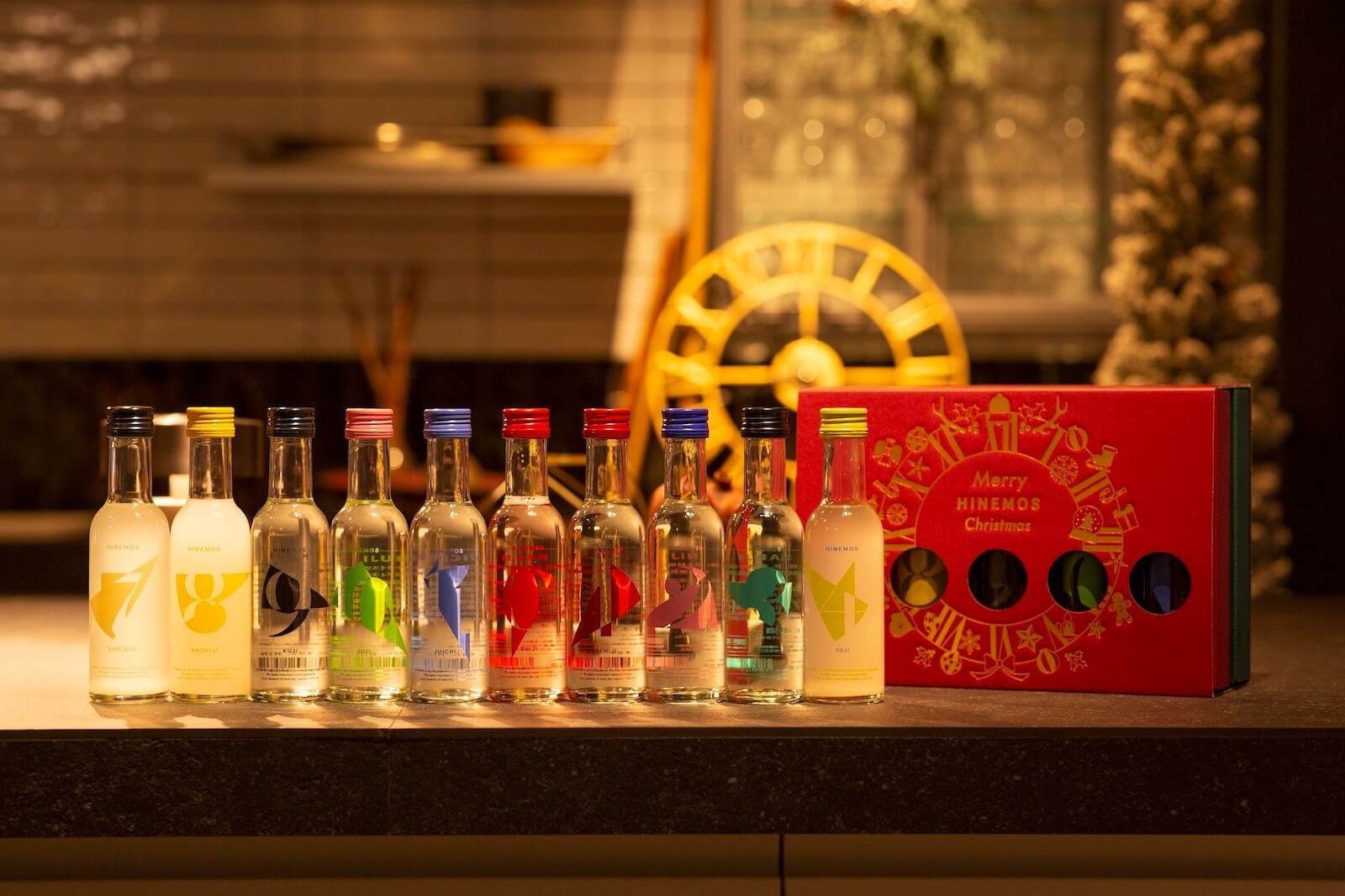 HINEMOS一番人気の飲み比べセットがクリスマス仕様にフルリニューアル。聖夜を彩るオーナメントのように、カラフルなミニボトルが食卓を鮮やかに。