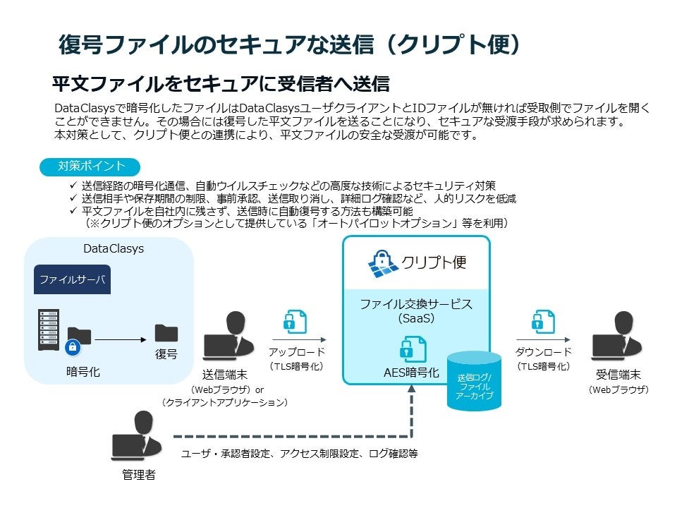 ファイル暗号化システム「DataClasys」が機密情報の受け渡しに特化した安全・確実なファイル交換サービス「クリプト便」と連携を開始