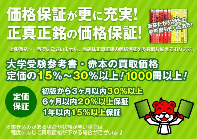 買取では、「学参プラザ(受験参考書・問題集・赤本・予備校テキスト・教材の専門買取店)」「専門書アカデミー(専門書・医学書・大学教科書・資格試験参考書・問題集・予備校テキスト・教材の専門買取店)」「メディカルマイスター(医学書・医療系書籍・予備校テキスト・教材の専門買取店)」の3サイトを展開しています。インターネットから申し込みをして宅配便の着払いで送るだけの簡単買取。全国から送料無料で買取可能。ご希望の方には段ボール無料送付サービスも行っています。